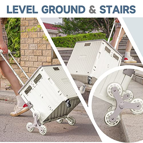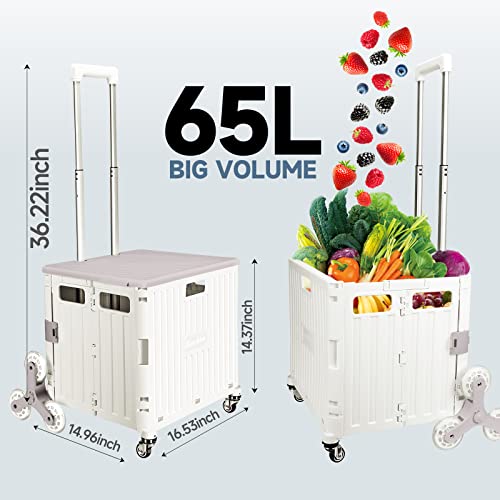 Specification: Honshine Foldable Cart with Stair Climbing Wheels, Collapsible Rolling Crate with Telescoping Handle, Handcart for Grocery Book File Tool Art Supplies(Milky White)