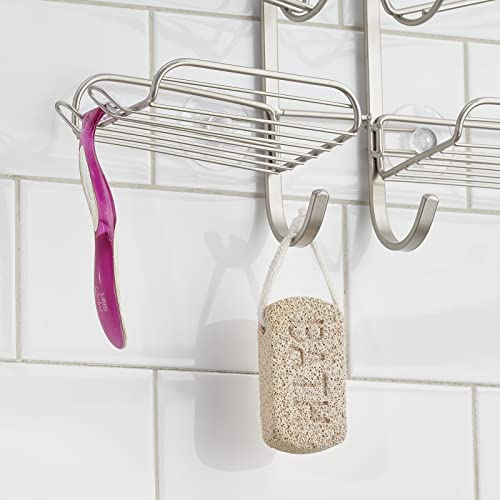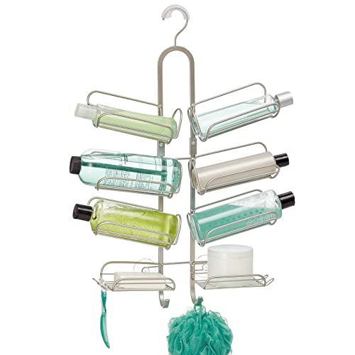 mDesign Hanging Metal Shower Caddy – Bottle Organizer Shelves with Hooks for Shower – Bath, Bathroom Hanging Shower Caddy Rack for Shampoo – Shower Hanging Organizer – Concerto Collection – Satin