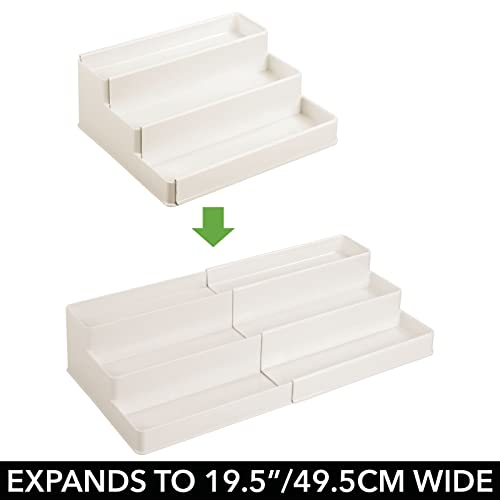 mDesign Plastic Expandable 3-Tier Shelf Rack Organizer – Storage for Bathroom Vanity, Cabinet, Cupboard, Drawer – Holds Medicine, Vitamins, Supplements, Cosmetics – Ligne Collection – Cream/Beige