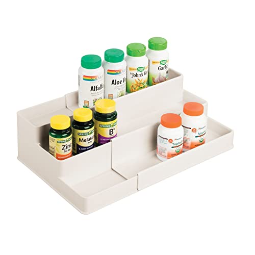 Specification: mDesign Plastic Expandable 3-Tier Shelf Rack Organizer – Storage for Bathroom Vanity, Cabinet, Cupboard, Drawer – Holds Medicine, Vitamins, Supplements, Cosmetics – Ligne Collection – Cream/Beige