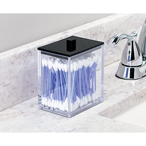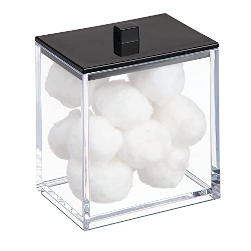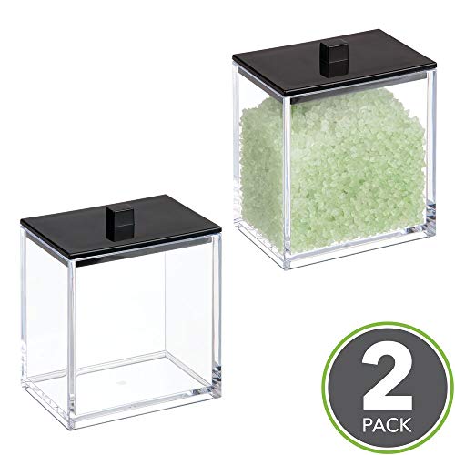 mDesign Plastic Rectangle Apothecary Canister – Organizer for Bathroom Vanity Countertop Shelf Decor – Holds Cotton Swabs, Soap, Makeup, Bath Salts – Lumiere Collection – 2 Pack – Clear/Black