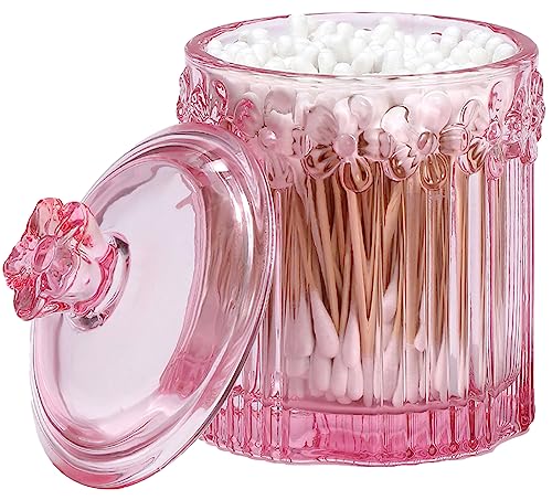 Specification: rejomiik Qtip Holder Glass Apothecary Jars with Lids Set Bathroom Canisters Dispenser Organizers and Storage for Cotton Ball, Cotton Swab, Floss, Pink