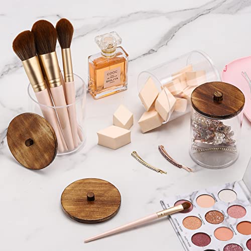 Tbestmax 4 Pack Qtip Holder 10-Ounce, 12-Ounce Bathroom Storage Containers Clear Plastic Apothecary Jars with Lids for Organizing Cotton Ball, Cotton Swab (Bamboo Lids)