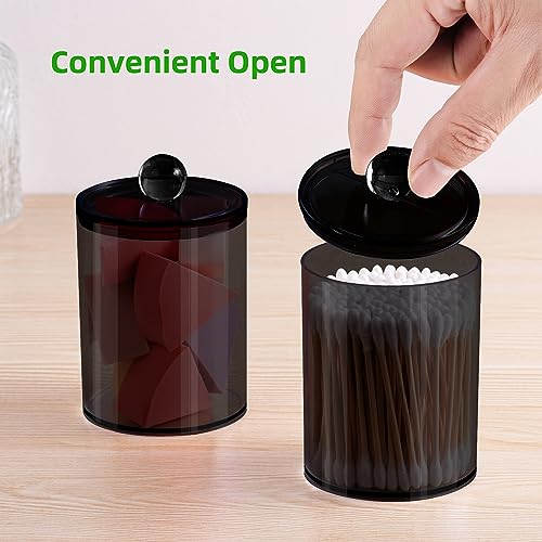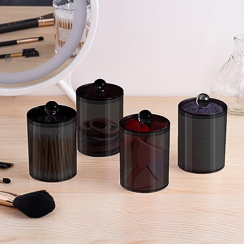 XIPENGKEJI 4 Pack Qtip Holder, Apothecary Jars Cotton Ball Holder Dispenser, Bathroom Jars with Lids Set for Cotton Round, Cotton Swab, 10oz Plastic Canisters Restroom Bedroom Vanity Organizer Black