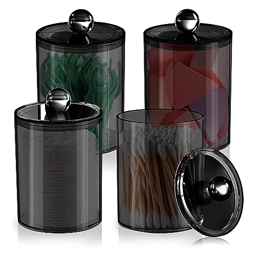 Specification: XIPENGKEJI 4 Pack Qtip Holder, Apothecary Jars Cotton Ball Holder Dispenser, Bathroom Jars with Lids Set for Cotton Round, Cotton Swab, 10oz Plastic Canisters Restroom Bedroom Vanity Organizer Black