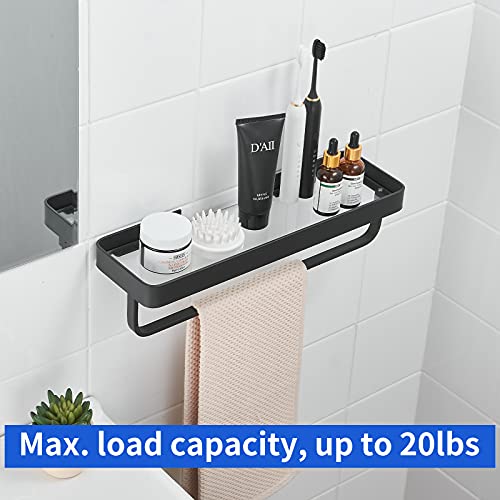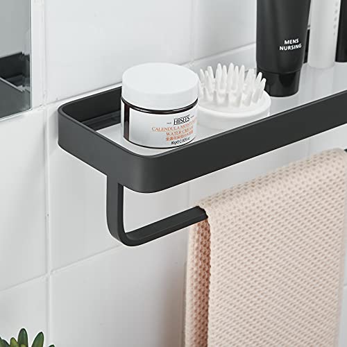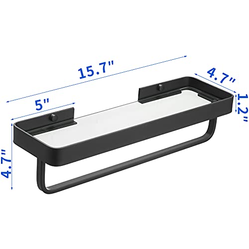 dancrul Bathroom Shelf Organizer Wall Mounted- Black Floating Shelves for Wall Glass Bathroom Storage Shelf 16 Inch