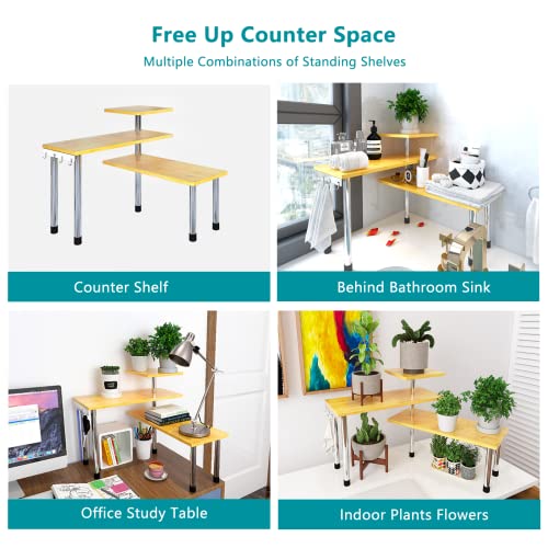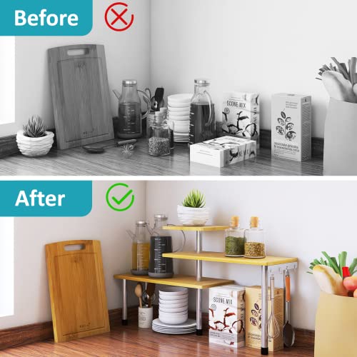 【Spacious Space to Store】Three Shelves keep your items organized, allowing more surface area in a small space. You can use the shelf to augment your spice rack, holding many items including plants, lotions, makeups, books, office supplies, coffee items, tea cups, etc.
