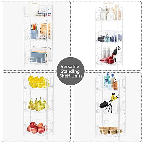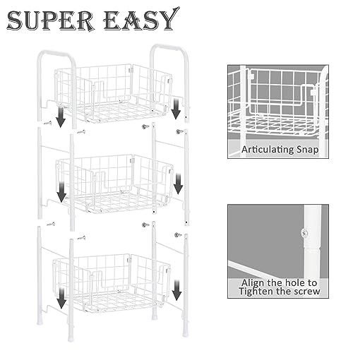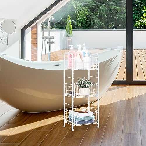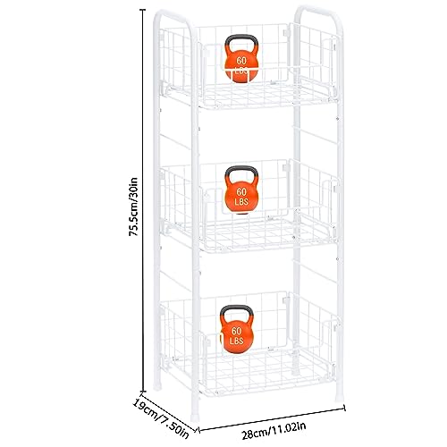 SHINOSKE Freestanding Bathroom Shelving Unit,3 Tier Metal Shelf,Bathroom Storage Shelf Basket Shelf for Bathroom,Kitchen,Living Room,Can Accommodate Toiletries Home Office Supplies – White