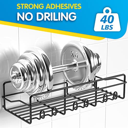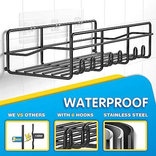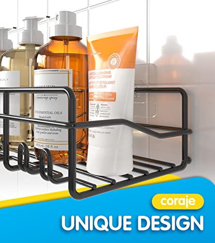 Coraje Adhesive Shower Caddy, [2-Pack] Shower Organizer, Large Capacity Rustproof Shower Shelves, Stainless Steel Bathroom Shower Organizer, Shower Shelf for Inside Shower, Black