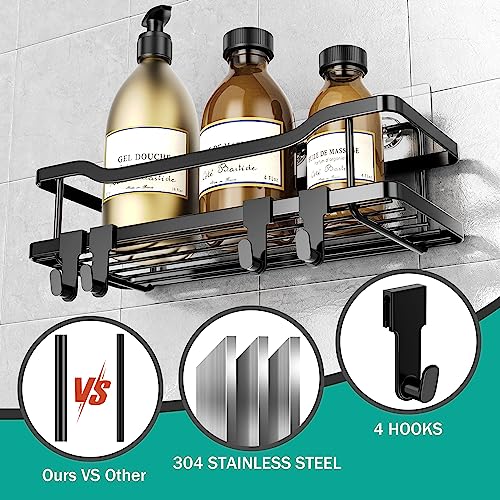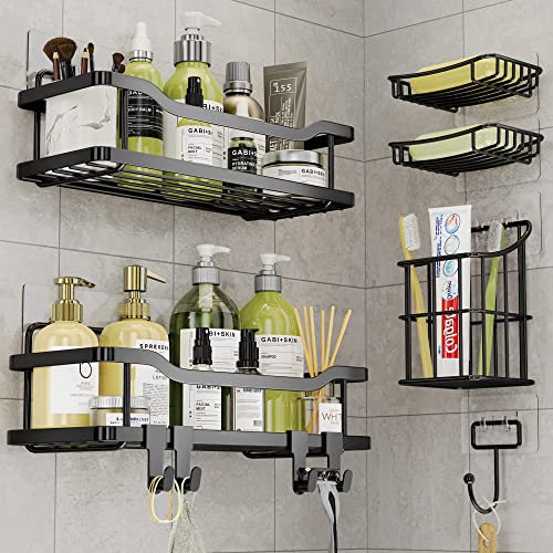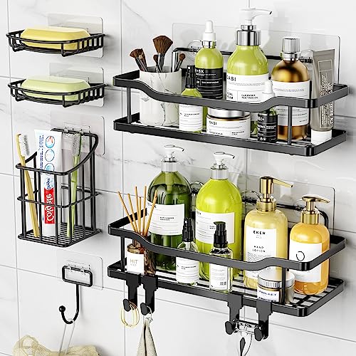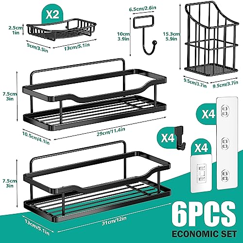 OMAIRA Shower Caddy [6 Pack], No Drilling Large Capacity Stainless Steel Adhesive Shower Organizer Bathroom Organizer, Shower Shelf for Inside Shower, Bathroom Shelves Kitchen Storage (Black)
