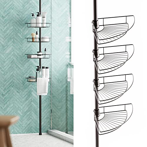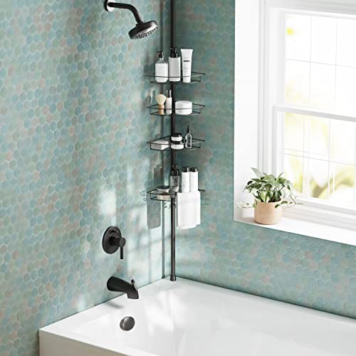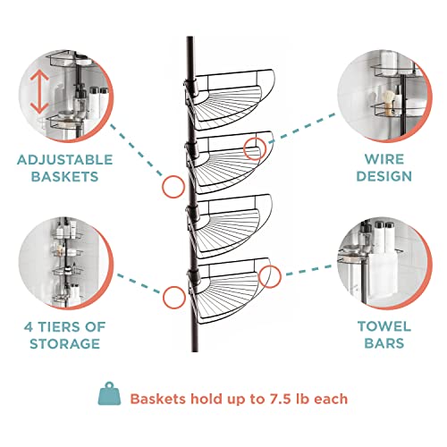 The easy-to-assemble, install and adjust Zenna Home Tension Pole Shower Caddy makes it simple to add valuable storage inside your bath or shower space. The pole caddy’s four baskets are adjustable up and down to maximize and customize storage inside your shower. An innovative tension mechanism makes it easy to securely install the caddy in most standard bath spaces (from 60 to 97 inches high). Assembly is easy and tool-free with no cutting necessary. The rust-resistant caddy features a rich bronze finish and is easy to keep clean by wiping with a damp cloth.