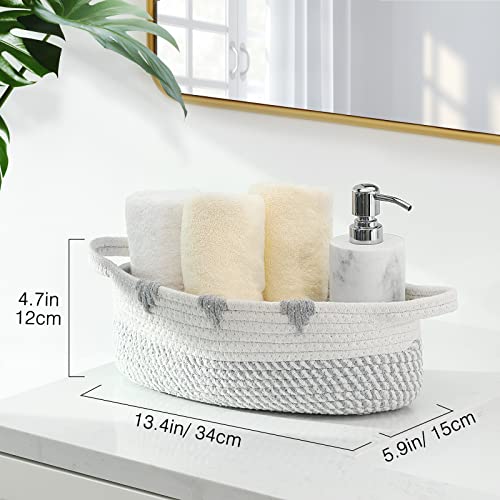 Luxspire Toilet Paper Basket, Boho Bathroom Basket Handmade Cotton Rope Woven Basket Toilet Paper Storage Bins Small Basket with Handle for Bedroom Nursery Bathroom, 13.4″ x 6″, White + Gray