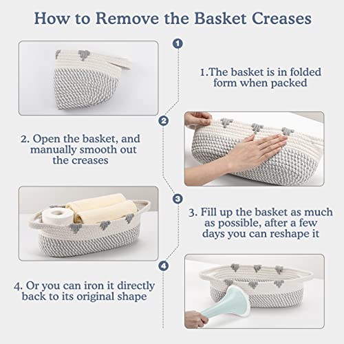 【Portable and Thoughtful Handle Design】 The humanized wide handle of the cotton rope woven basket enables you to move the basket easily with less pressure. (NOTE: The toilet paper basket may exist some creases due to folded transportation, any creases or folds in the toy basket can easily reinstate via ironed or filled.)