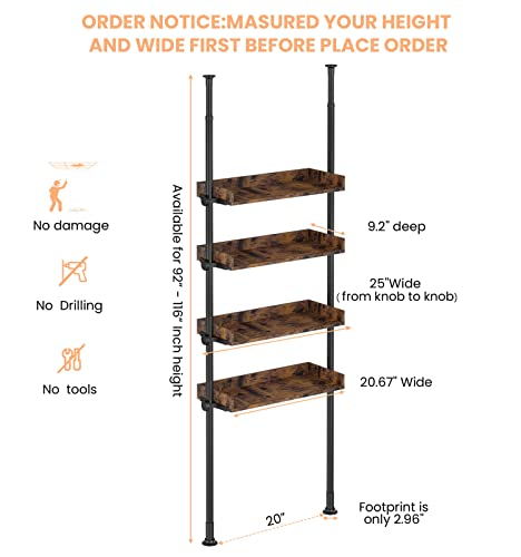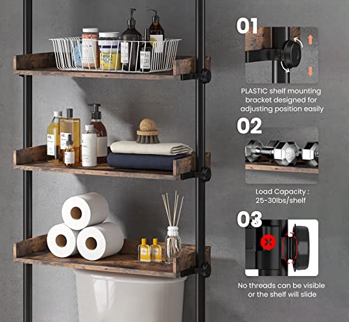 Specification: ALLZONE Bathroom Organizer, Over The Toilet Storage, 4-Tier Adjustable Wood Shelves for Small Rooms, Saver Space Rack, 92 to 116 Inch Tall, Narrow Cabinet, Rustic Brown