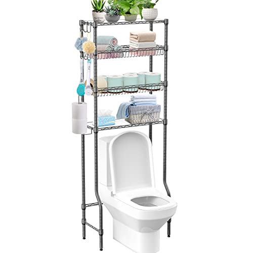 Specification: Folews Over The Toilet Storage, 4-Tier Bathroom Shelves Over Toilet Shelf Above Toilet Storage Rack Freestanding Bathroom Space Saver with Adjustable Shelves and Baskets, Gray