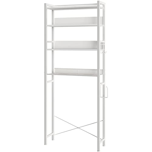 Rolanstar Over The Toilet Storage, 4-Tier Wooden Bathroom Space Saver with Hooks, Freestanding Bathroom Organizer, Multifunctional Over The Toilet Storage Rack, Bathroom Toilet Rack, White
