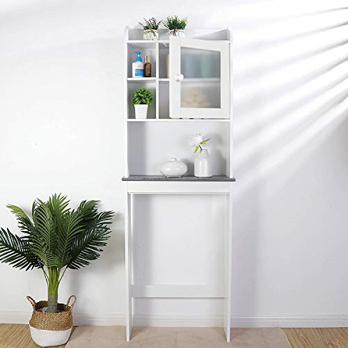 Specification: SUPER DEAL Over The Toilet Bathroom Storage Cabinet Freestanding Wooden Bathroom Organizer with Adjustable Shelves and Glass Door, White