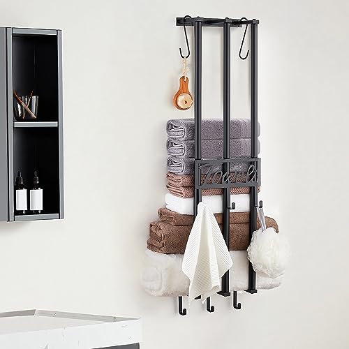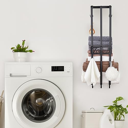 【Large Capacity Towel Storage for Small Bathroom】 Various storage hooks such as to hang hand towel, combs or bath balls, dry and wet towels separately. With 8 hooks, the black towel rack making full use of the wall space and maximizing the towel storage space.
