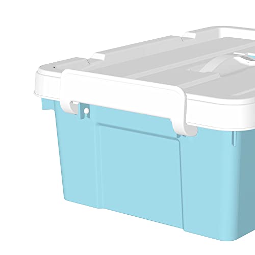 Cetomo 15L*4 Plastic Storage box, Tote box,Organizing Container with Durable Lid and Secure Latching Buckles, Stackable and Nestable, 4Pack, Blue with Buckle