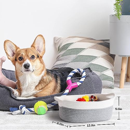 Specification: Goodpick Small Woven Basket Cute Gray Rope Basket Cotton Basket Baby Room Storage Basket Dog Toy Basket with Handles Empty Gift Basket for Shelf 12″x 8″ x 5″ Easter Basket Oval Candy Color Design