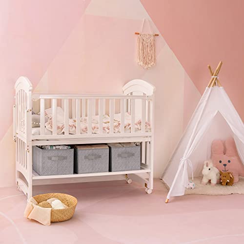 GRANNY SAYS Clothing Storage Bins for Closet with Handles, Foldable Rectangle Baskets, Fabric Containers Boxes for Organizing Shelves Bedroom, Gray, Large, 3-Pack