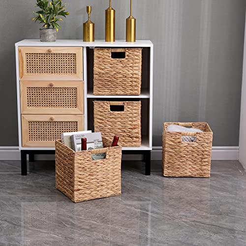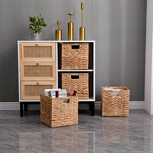 JGJCYO9 Storage Baskets Wicker Cube Baskets Foldable Handwoven Water Hyacinth Laundry Organizer,Set of 4 pcs Baskets-11x11x11inch
