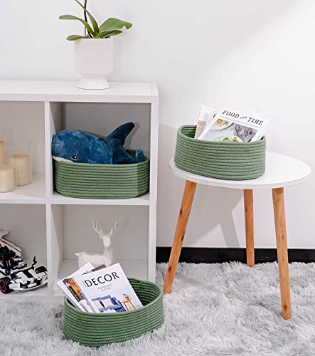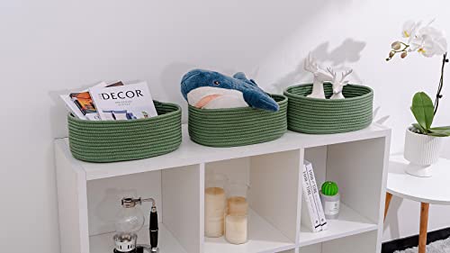 Kriitools Shelf Storage Baskets for Organizing|Decorative Basket for Closet Storage|Toy Baskets&Bins|Small Woven Rope Baskets-13×8.66×5.11’’,Durable&Stylish,Oval 3 Packs Green