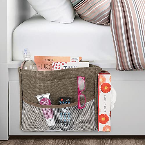 mDesign Bedside Hanging Storage Organizer Caddy Pocket – 5 Pockets, Elastic Side Straps for Tissue Box – Heavy Weight Cotton Canvas, Metal Wire Hanger – Espresso Brown/Satin