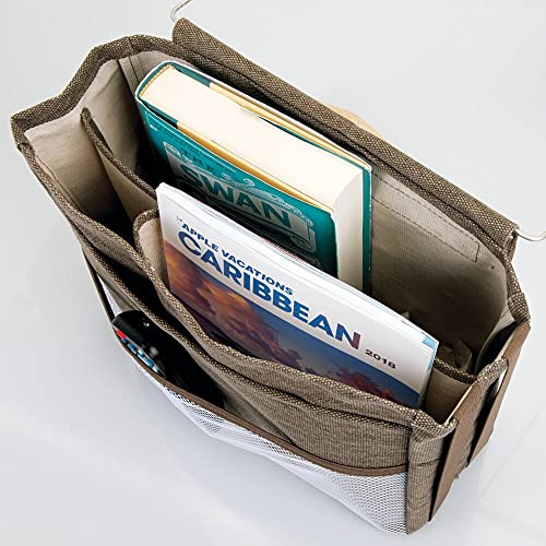 SIMPLE STORAGE: Simple to install by sliding the steel metal hanger between your mattress and box spring or bed frame to keep essentials nearby; The caddy has multiple pockets to keep items close at hand while you are relaxing in bed or on the couch