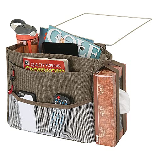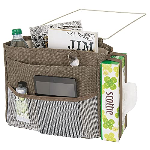 Specification: mDesign Bedside Hanging Storage Organizer Caddy Pocket – 5 Pockets, Elastic Side Straps for Tissue Box – Heavy Weight Cotton Canvas, Metal Wire Hanger – Espresso Brown/Satin