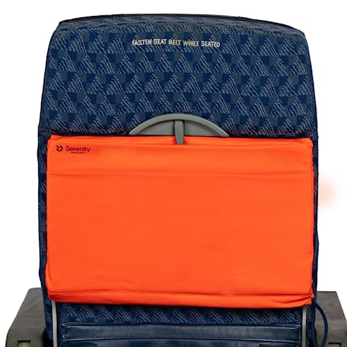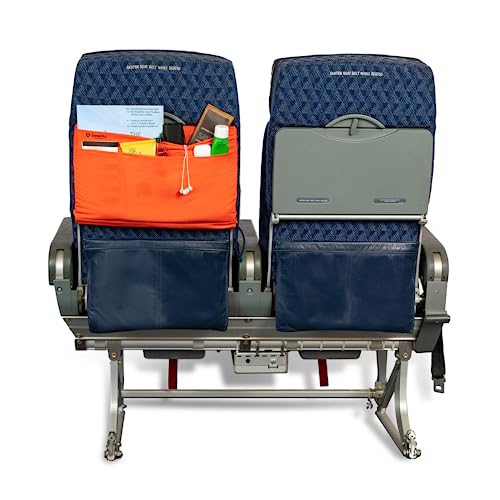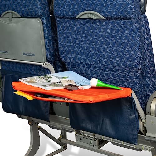 Specification: Serenity Organizers AirplaneTravel Tray Organizer, Lightweight and Compact, 4 Storage Pockets, Reusable, Washable Fabric, Converts to Drawstring Tote, Elastic back for most airplanes, Fire Orange