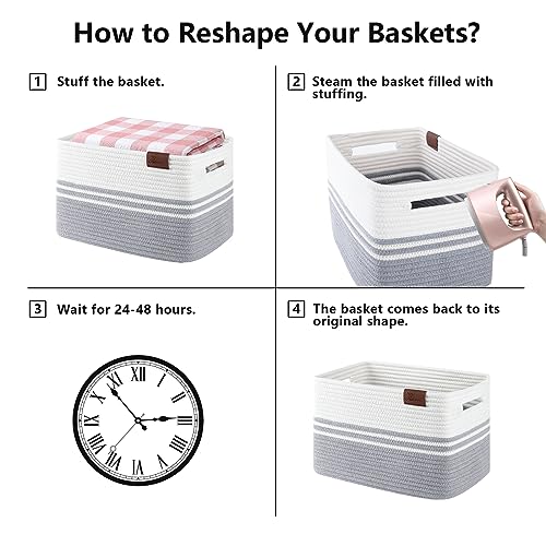Specification: SIXDOVE 3 Pack Shelf Baskets, Woven Cotton Rope Storage Bin, Soft Rectangular Closet Basket Set, Long-Lasting & Stylish, Decorative Organization for Clothes, Toys, Books, Grey, 15”L x 10”W x 9”H