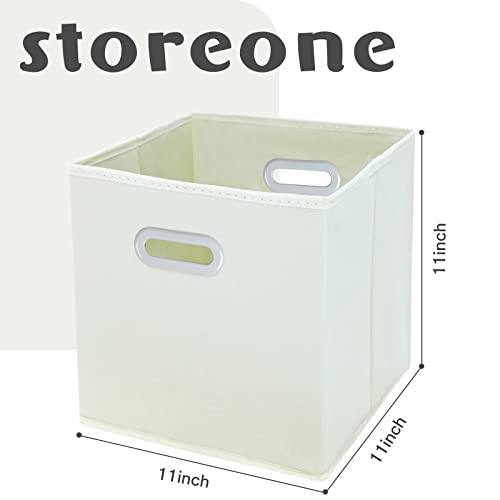 STOREONE Fabric Storage Bins Cubes Baskets Containers-(11X11X11″) with Dual Handles Cube Storage Organizer Bins for Shelf Closet, Bedroom Organizers, Foldable Set of 3 (Creamy- White )