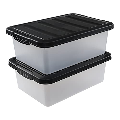 Tyminin Medium Storage Bin with Lid, 14 Quart Plastic Stackable Container Box, 2 Pack