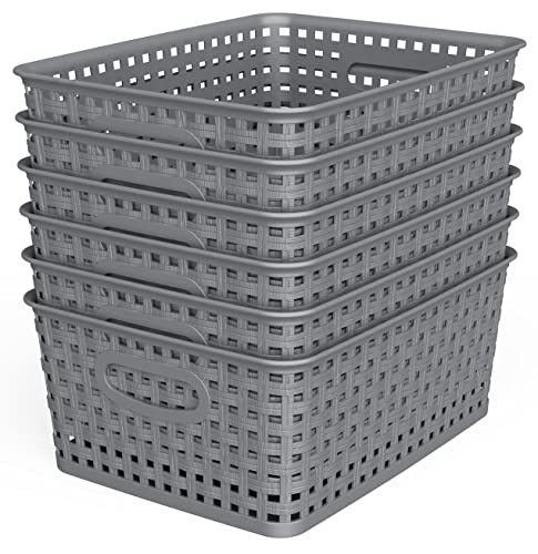 WYT Weave Storage Organizer Baskets, Grey 6-Pack Plastic Woven Baskets, 10.1″ x 7.55″ x 4.1″