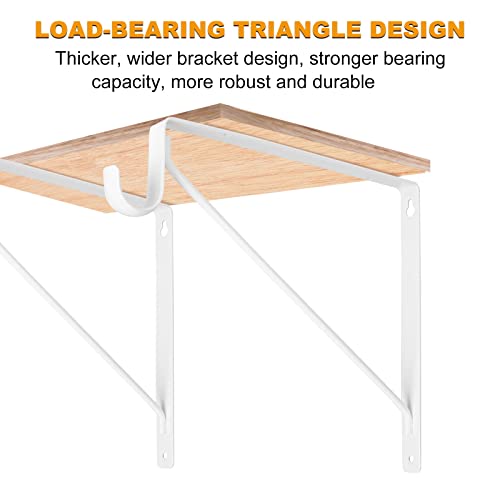 2 Pack Heavy Duty Closet Rod Brackets Holder 11 x 11 x 1 Inch, White Closet Rod Support Bracket Steel Closet Rod Holders for Hanging Clothes, Wall Mounted Shelf and Rod Support Brackets with Screws