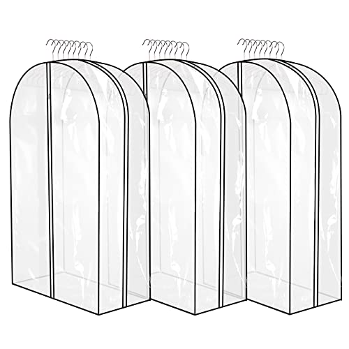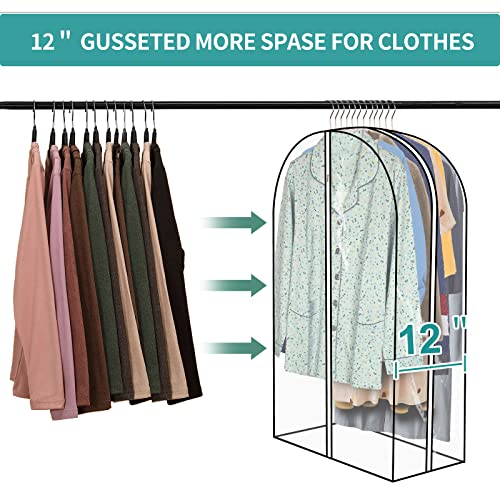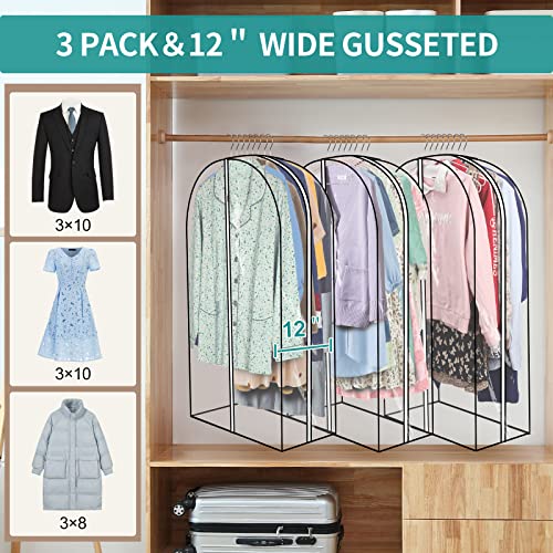 3 Pack Garment Bags For Hanging Clothes,12″ Gusseted Large Capacity Garment Rack Cover,Clear Suit Bags For Closet Storage,Clothes Storage Bags With Zipper For Coat, Jacket, Sweater, Shirts,