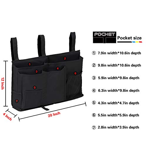 Specification: Aiduy Bedside Caddy Hanging Organizer, Bunk Bed Organizer for Top Bunk Bed, Bedside Pocket Hanging Storage Caddy Bag for Dorm Hospital Bed College Dorm, Black