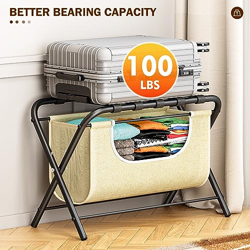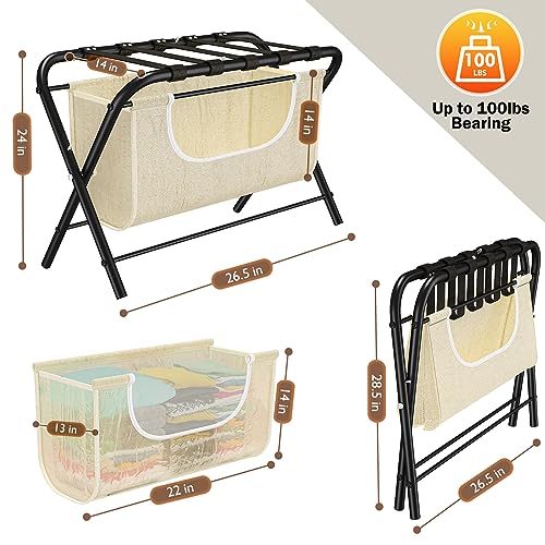 Specification: caktraie 2 Pack Luggage Rack with Laundry Bag,Guest Room Folding Suitcase Stands,Luggage Rack Shelf with Heavy Duty Nylon Belts,Holds up to 100 lb,Dirty Clothes Storage for Bedroom Hote
