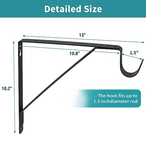 Multifunctional Design – Closet brackets with rod holder accommodates for both wall shelf and a closet rod, measures 13*10.2 inches, the closet rod holder fits 1.5 inch diameter rod, great to create more space of wall for storage, helps you neatly store sweaters, accessories, bags, shoes, detergent, books, and more.