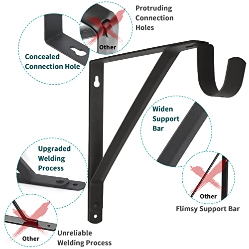 Closet Rod Bracket, Heavy Duty Closet Brackets with Rod Holder, Black Shelf Bracket Wall Mounted Closet Rod Support Bracket Clothes Hanger for Shelf Storage and Closet Rod, 4 Pack