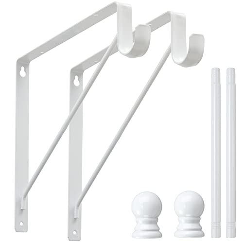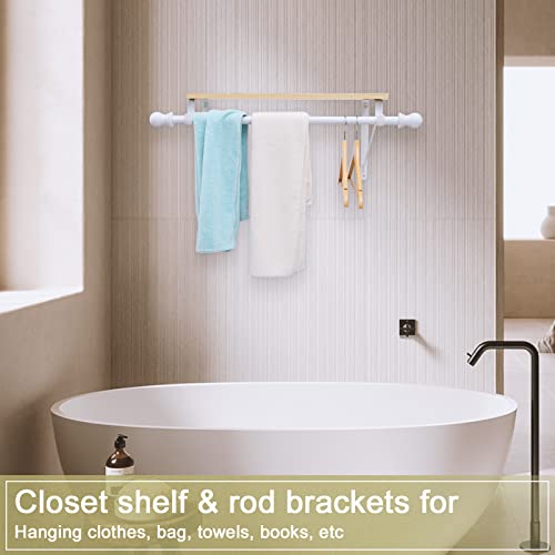Closet Rod Brackets with 32″ Rod, Heavy Duty Closet Shelf Brackets with Rod Holder for Shelf Storage and Hanging Clothes, 2 Pack Wall Mount Closet Pole Supports Bracket, White