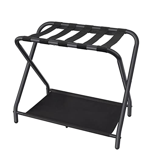 Specification: Dunatou Luggage Rack,Steel Folding Suitcase Stand with Storage Shelf for Bedroom, Living Room, Hotel Essentials, Heavy Duty Steel Frame ,Black