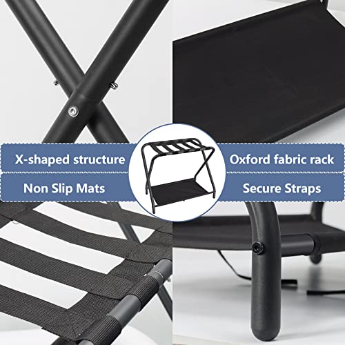 Dunatou Luggage Rack,Steel Folding Suitcase Stand with Storage Shelf for Bedroom, Living Room, Hotel Essentials, Heavy Duty Steel Frame ,Black