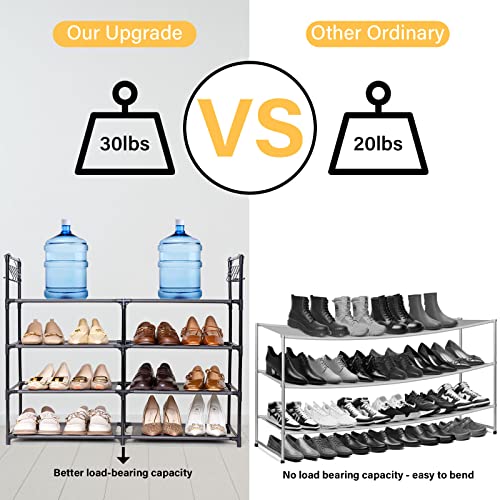 👟【4-Tier Shoe Rack】Large capacity shoe racks can hold 16-20 pairs of shoes (can store boots, high heels, sneakers, sandals, casual shoes, children’s shoes, etc.). Free standing shoe racks has hooks on both sides for easy placement of keys, wallets, etc. Shoe stand is suitable for various occasions closet, entryway, apartment, garage, living room, foyer, bedroom, etc.