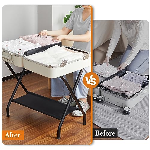 【Say Goodbye to Mess in Room】During journeys or when guests come, the carry-on luggage always needs designated storage space, the suitcase rack holds luggage easily and is beneficial for your back and knees as it eliminates the need to bend down to pack or sort them out on the floor or bed, creating a mess, enjoy neatness at home or on the go