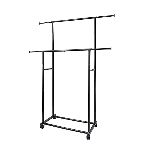 Specification: Fishat Simple Standard 2 Double Rod Clothing Metal Garment Rack for Hanging Clothes, Rolling Clothes Organizer on Lockable Wheels Mobile (Black)