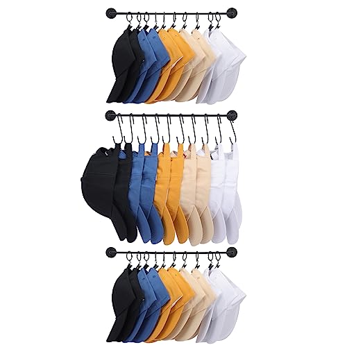 Fixwal Hat Rack for Wall Baseball Cap Organizer Hanger with 36 Hooks Modern Metal Hat Holder Wall-Mounted Caps Display for Closet Bedroom Laundry, Set of 3, Black
