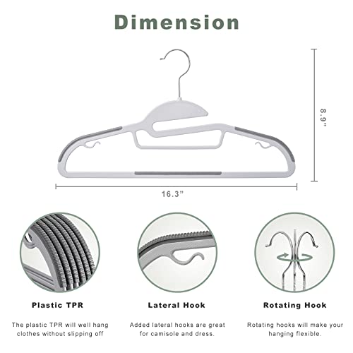 Specification: Heavy Duty Plastic Hangers 50 Pack with Non-Slip Design,0.2 Inches Thick,360°Swivel Hook Space Saving Organizer for Bedroom Closet,Shirts,Pants,Strong Enough for Coat (Grey- S Shaped)