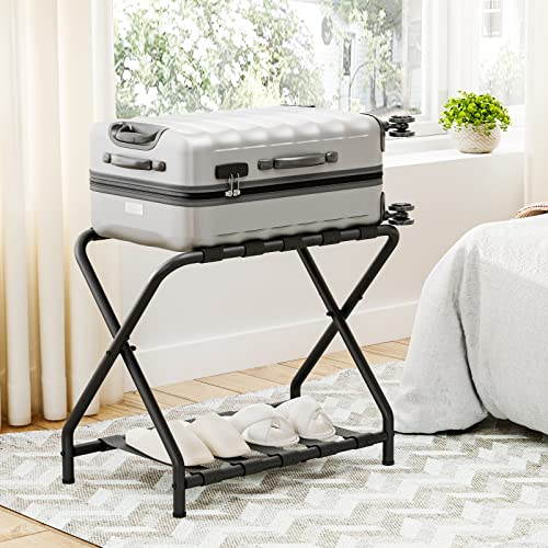 Specification: HOOBRO Luggage Rack, Folding Luggage Racks for Guest Room, Suitcase Stand, 27 x 15.3 x 22 Inches, Metal Foldable Luggage Holder with Nylon Straps, Space Saving, Bedroom, Hotel, Black BK03XL01